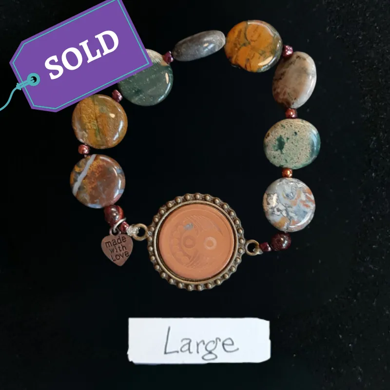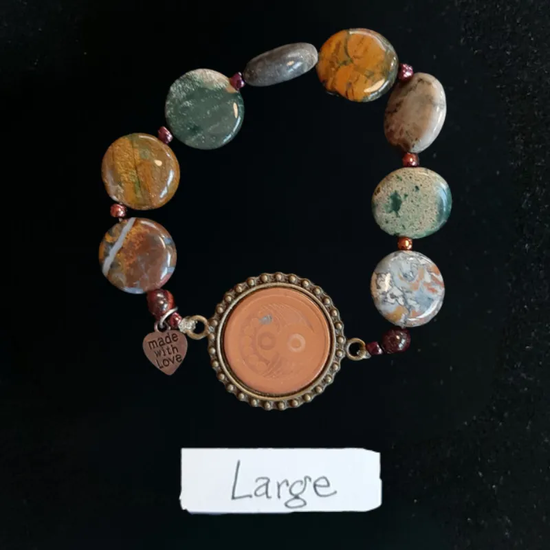 • Rainforest Jasper Size Large – this piece is discounted due to a copper blotch spot on the copper (does not affect the energy)