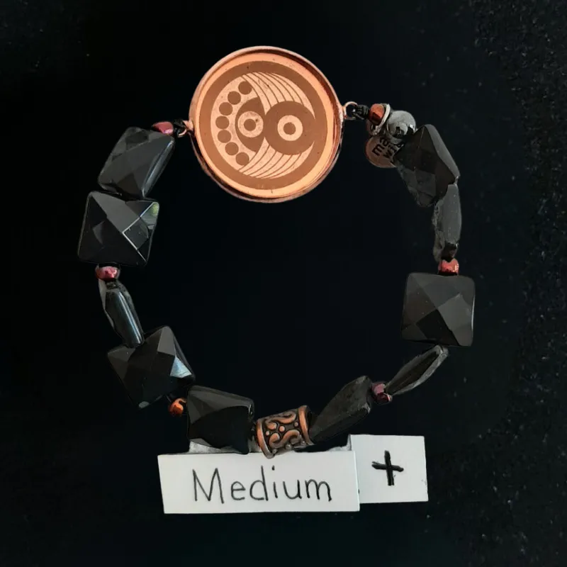 • Black Onyx Size Medium plus*not quite a large but a bit looser than a Medium diamond cut design, small squares ~ ½”