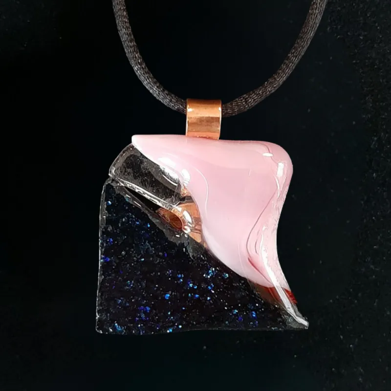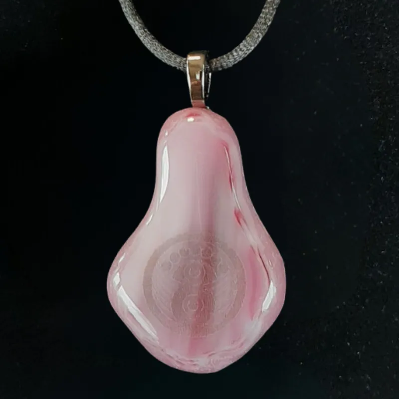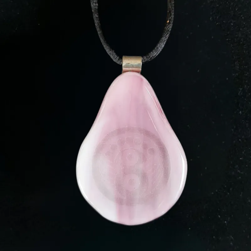 • Pink Fused Glass with lasered images of logo and crop circle–> the shown image