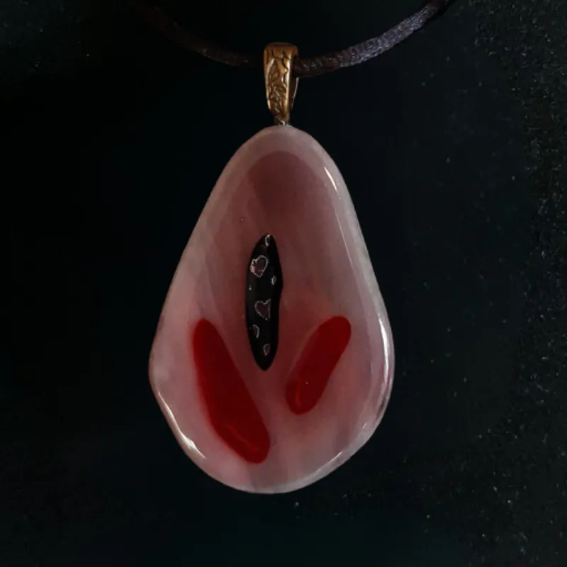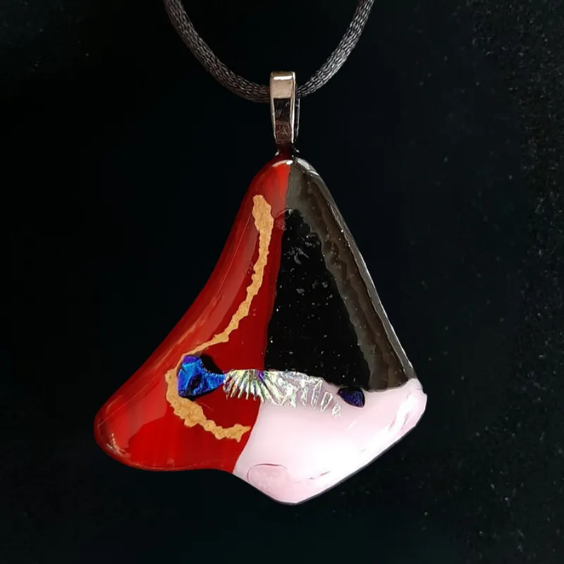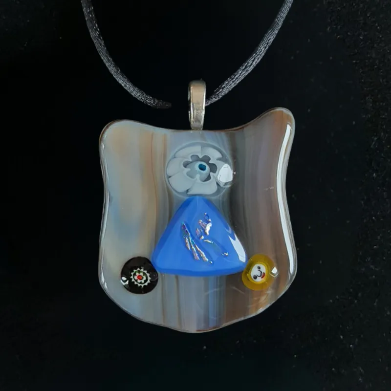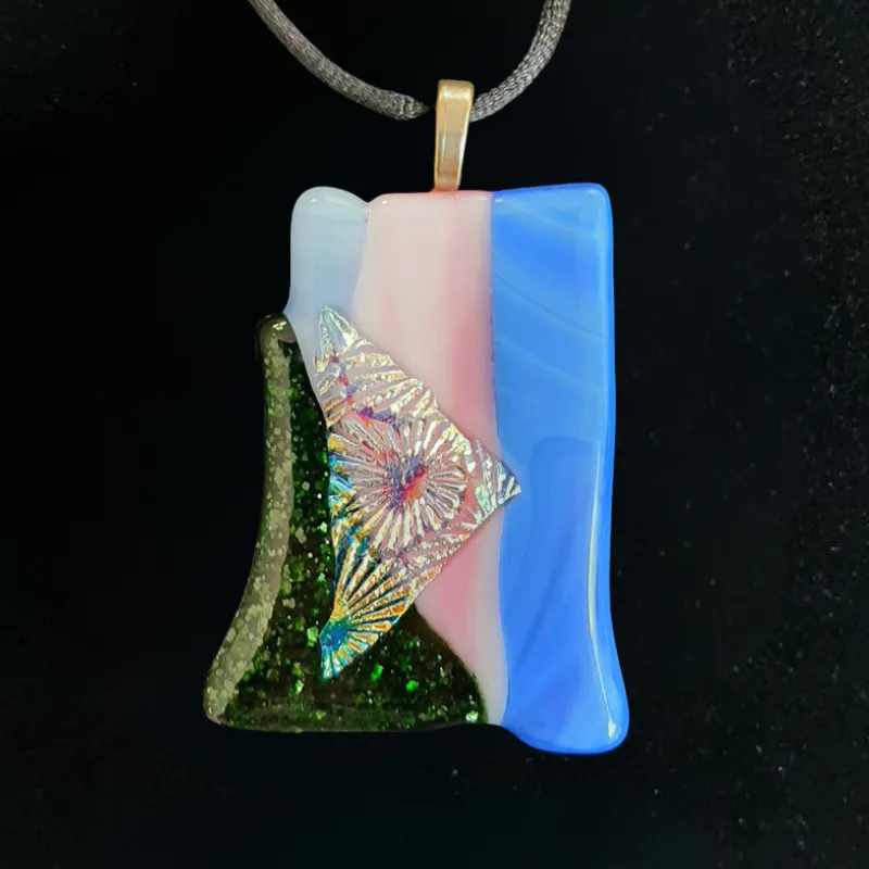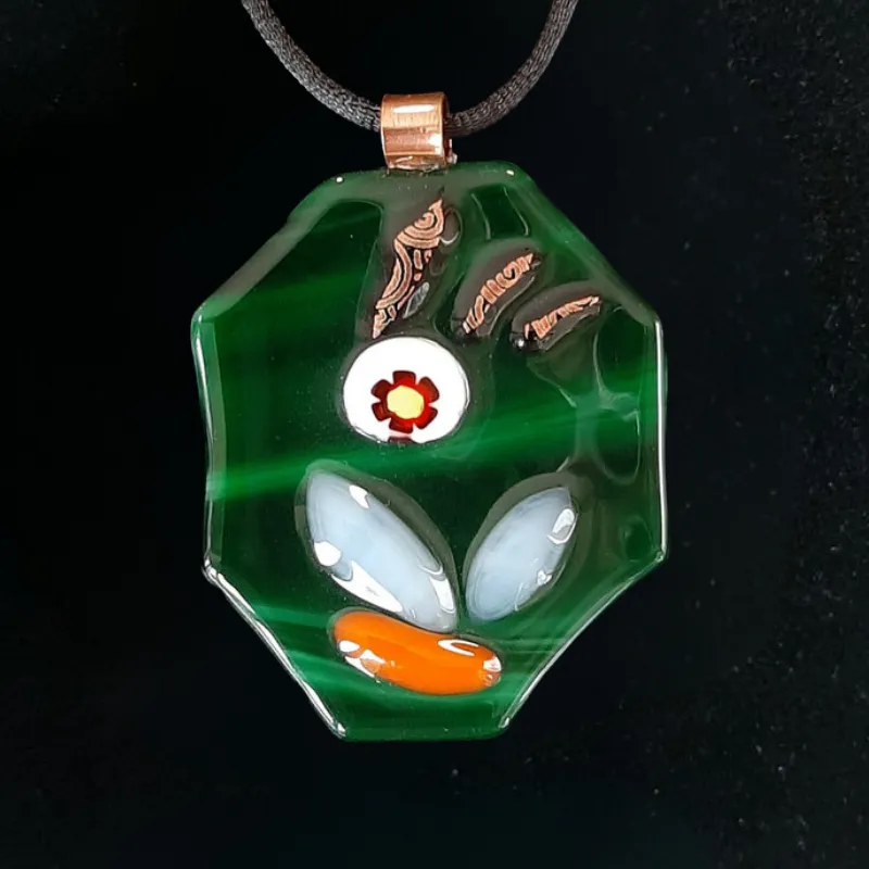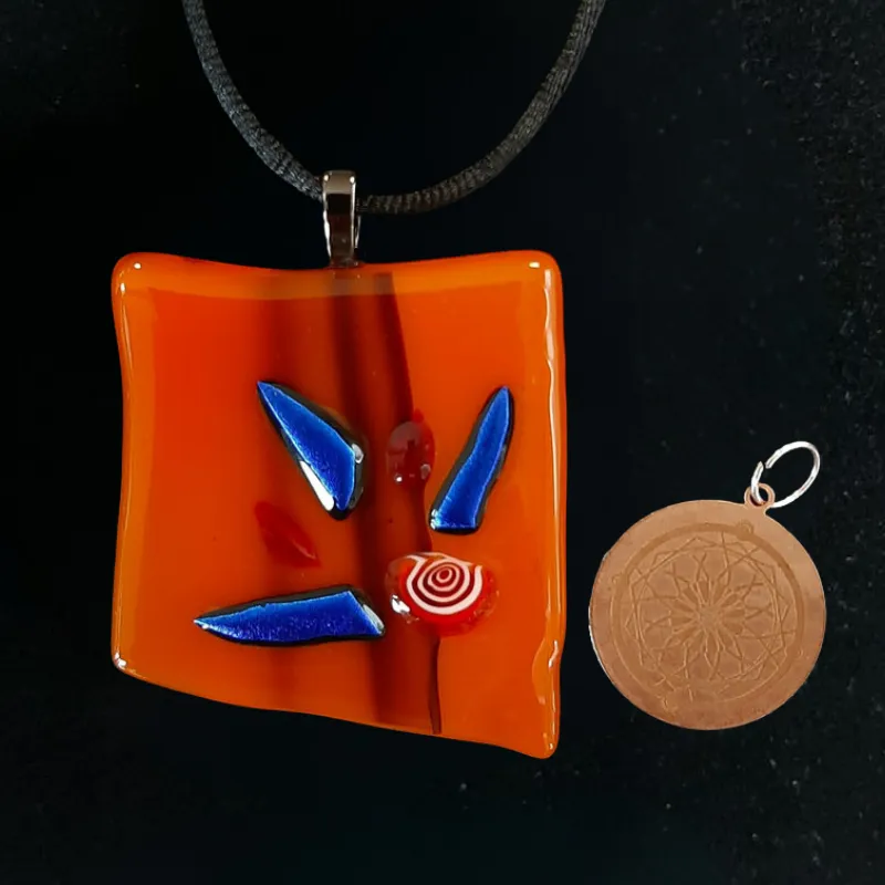 Each piece that I make is unique due to the nature of the glass fusing process, how the pieces are cut, and the additional flourishes I add to each piece. On the back of each piece is the copper Gaian coin. Only the lasered pieces do not have the coin.