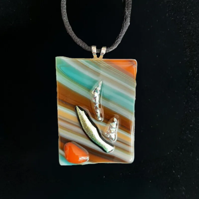 • Multi-pieced FGlass with dichroic - orange/red/white/grey-green
