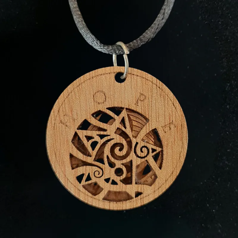 The wooden pendant collection contains lasered wood from the Philippines that has been sustainably harvested. The Copper Gaian coin is glued to the back of each one. (Read more on the energy of the copper coin)