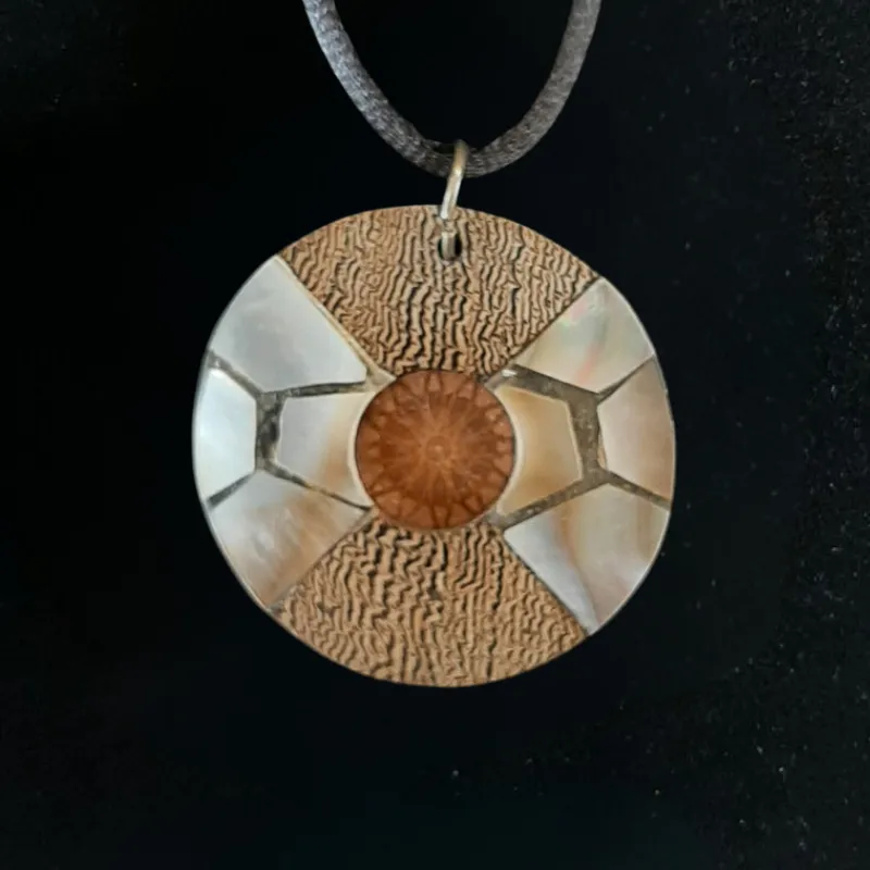 • Shell with copper Gaian coin on the back – a bit smaller than the wood circle pieces