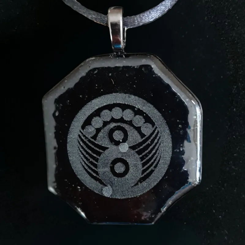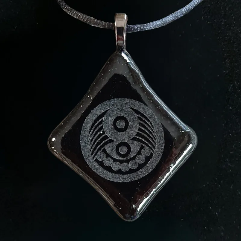 • Black Diamond, Fused Glass Lasered image; logo and crop circle-shown image