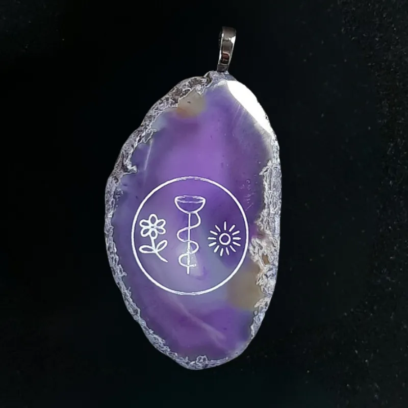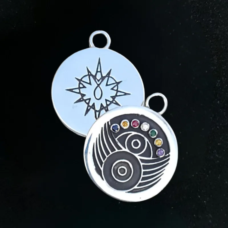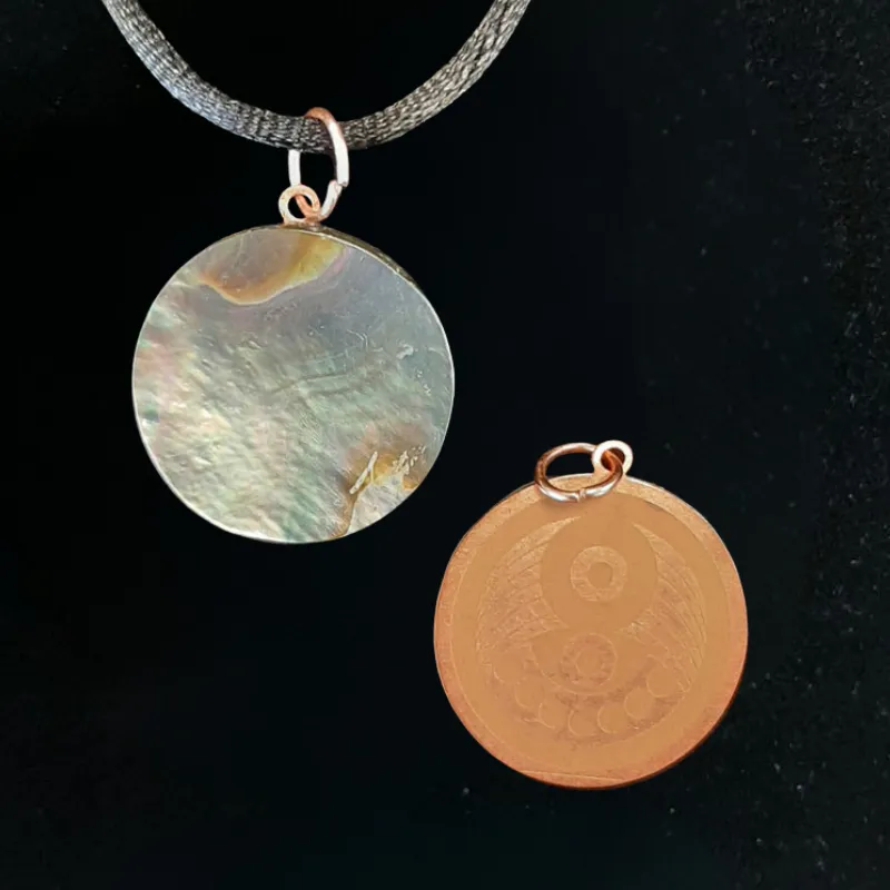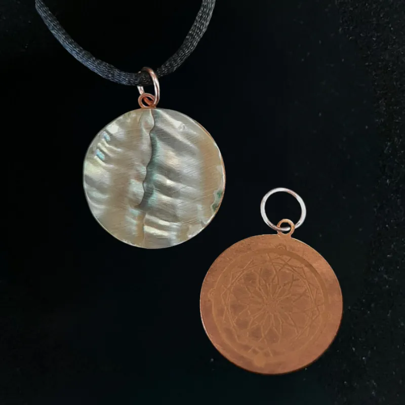 I created the lasered pieces for those who are sensitive to metal. The lasered pendants do not have flourishes or added pieces or copper coins. The measured frequency/energy of these is equal to the copper Gaian coins that are on the back of each pendant (a few have the coin on the front). ...as measured on a radionics frequency instrument... (Read more on the energy of the copper coin)